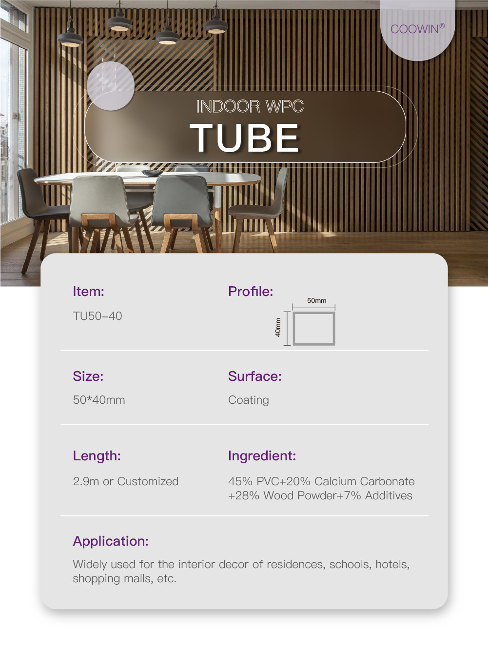 WPC Interior Decorative Timber Tube TU50-40